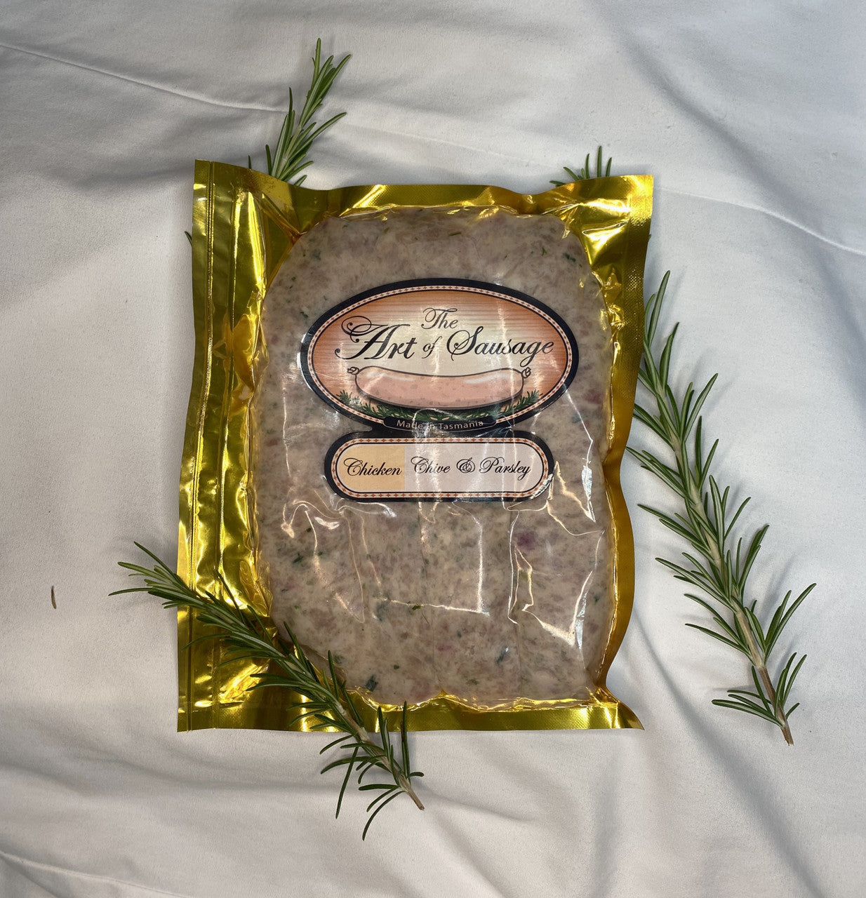 Fresh hand chopped chives & parsley with chicken, a mild yet flavoursome sausage with a fresh herb taste.
