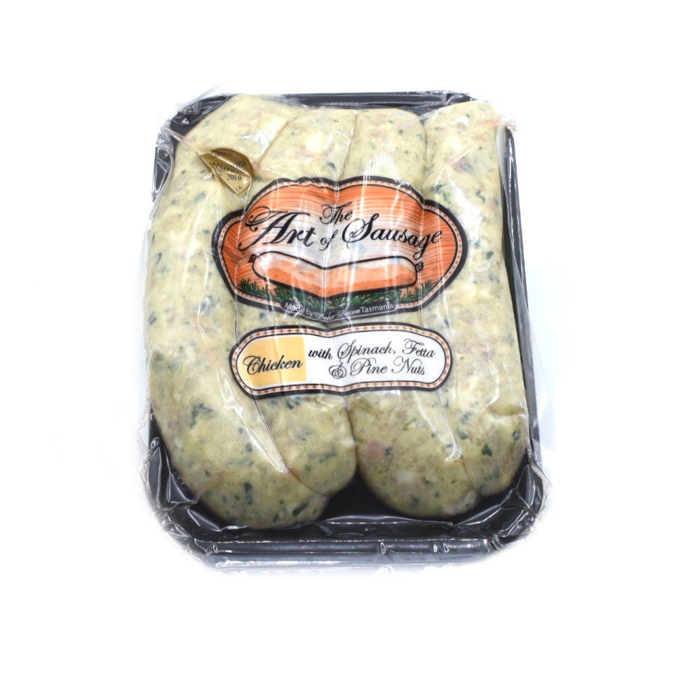Chicken with Houston baby spinach & Tassie fetta, a classic greek flavoured sausage.