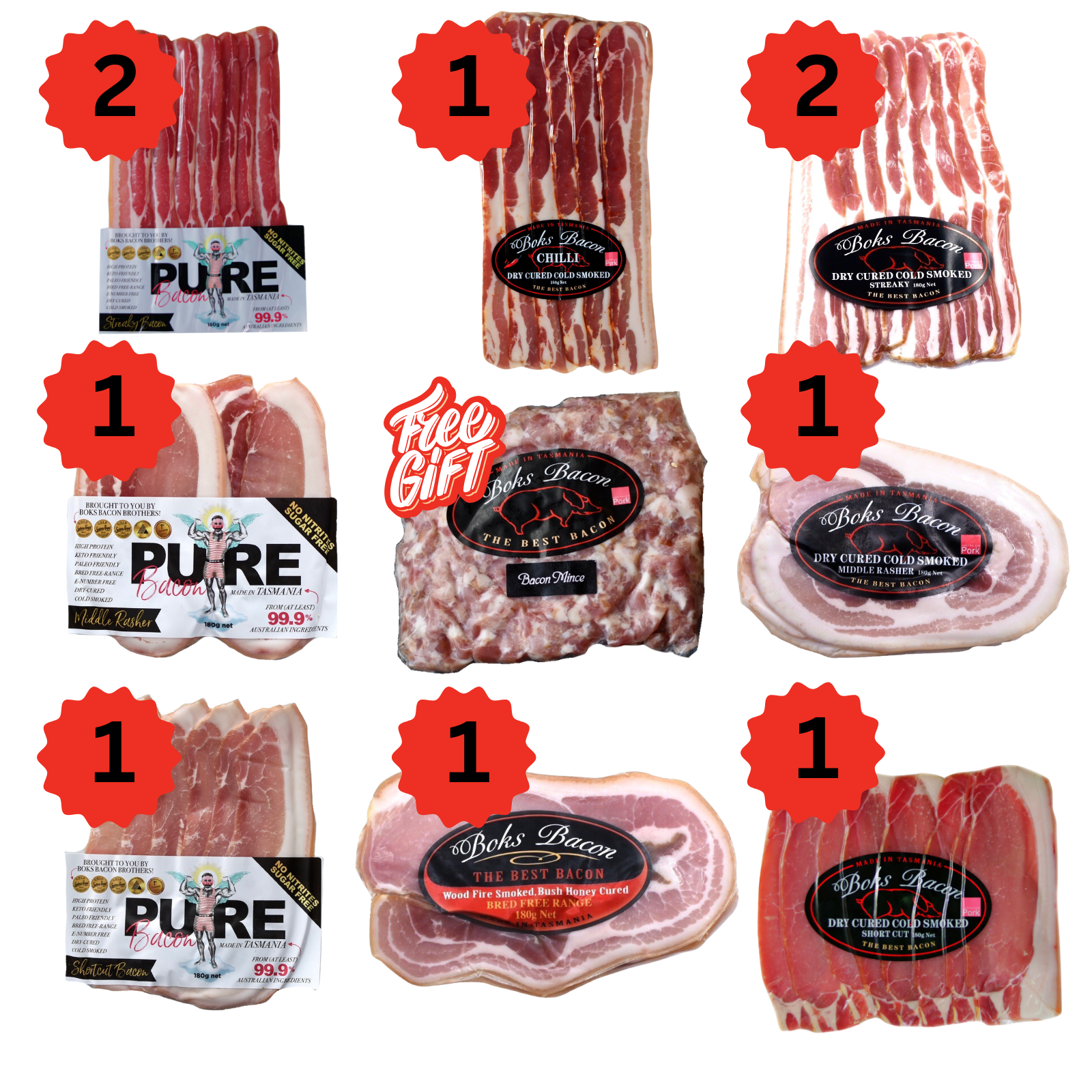 Indulge in the grandest selection with the Tassie Banquet Box, a collection of 10 premium items for the ultimate bacon lover. This box is packed with specialty Tasmanian bacon cuts, gourmet sausages, and artisan sauces, offering a full feast straight from the heart of Tasmania. Perfect for those who crave a generous spread of flavours, the Tassie Banquet Box brings the best of Tassie’s bounty to your table.