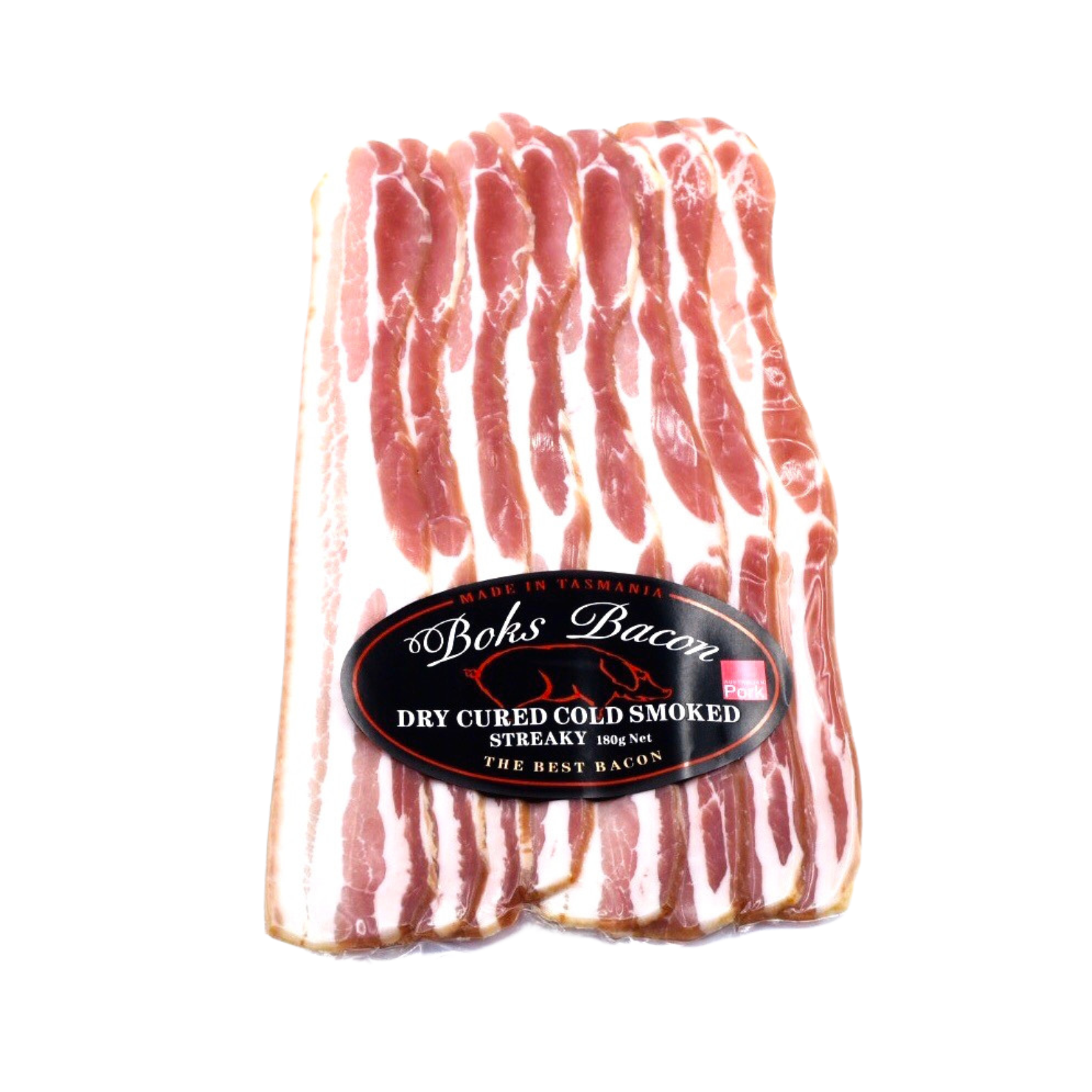 Relish the rich flavour of our Boks Streaky Bacon, Tasmanian oak smoked and dry cured for a savoury, crispy delight. Ideal for adding a crunchy texture to your meals.